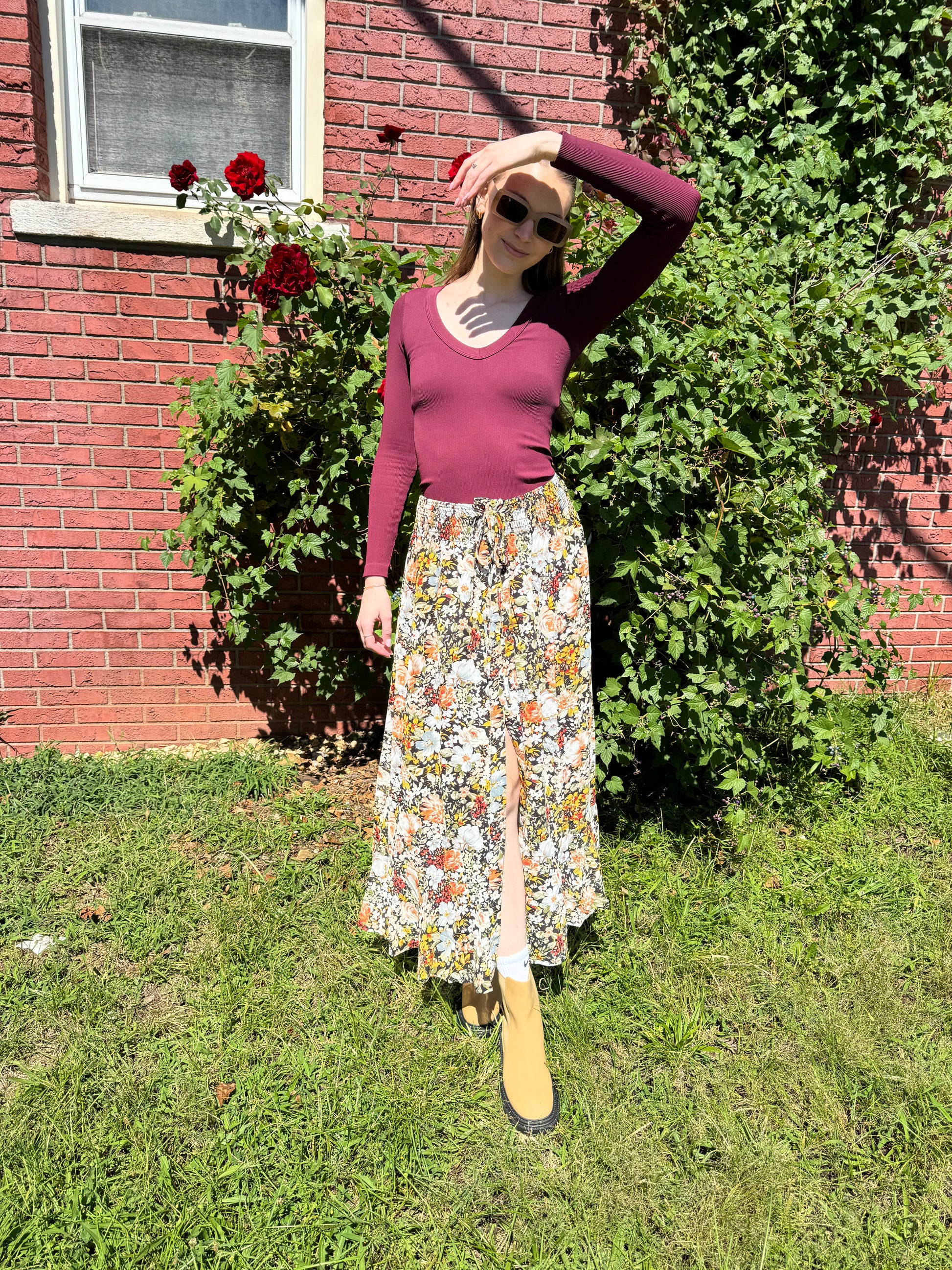 Our Autumn bloom maxi skirt is the ideal shift skirt for the season!