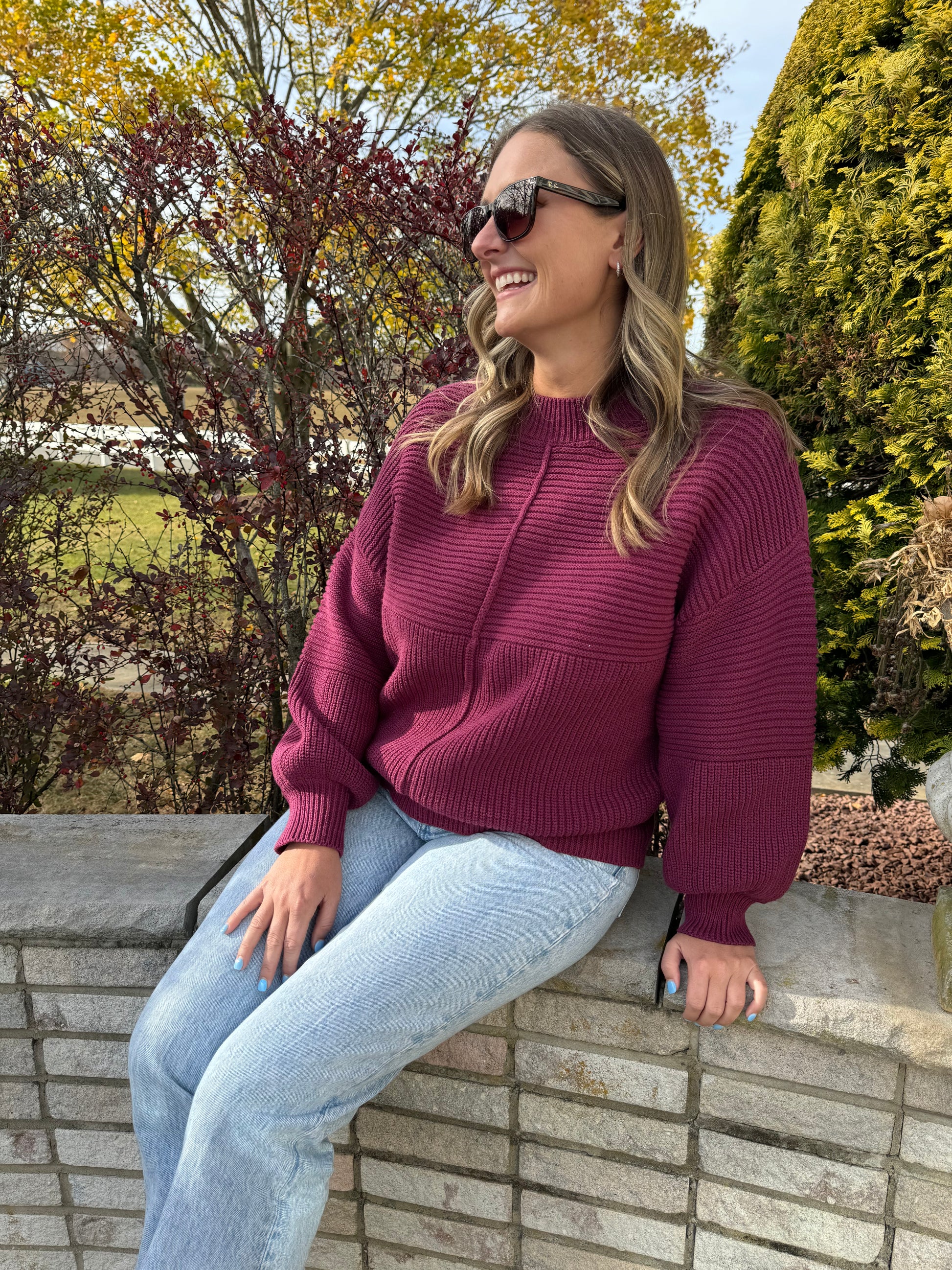 Sip on style with our Bordeaux Ribbed Sweater! This wine-colored chunky sweater boasts ribbed detailing for a cozy and chic look. Perfect for any occasion, you'll be the toast of the town in this playful and trendy piece. Cheers to looking fabulous and feeling cozy!