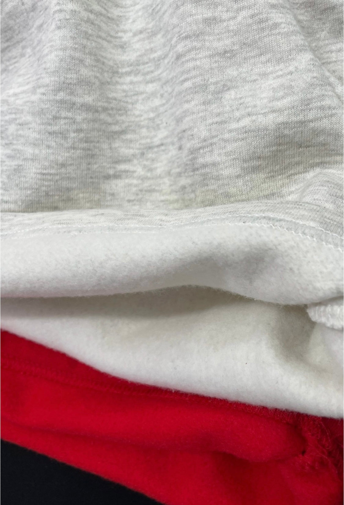 Light grey has an off-white drawstring and a white heathered detail where as the dark grey has a grey drawstring and grey heathered detail.