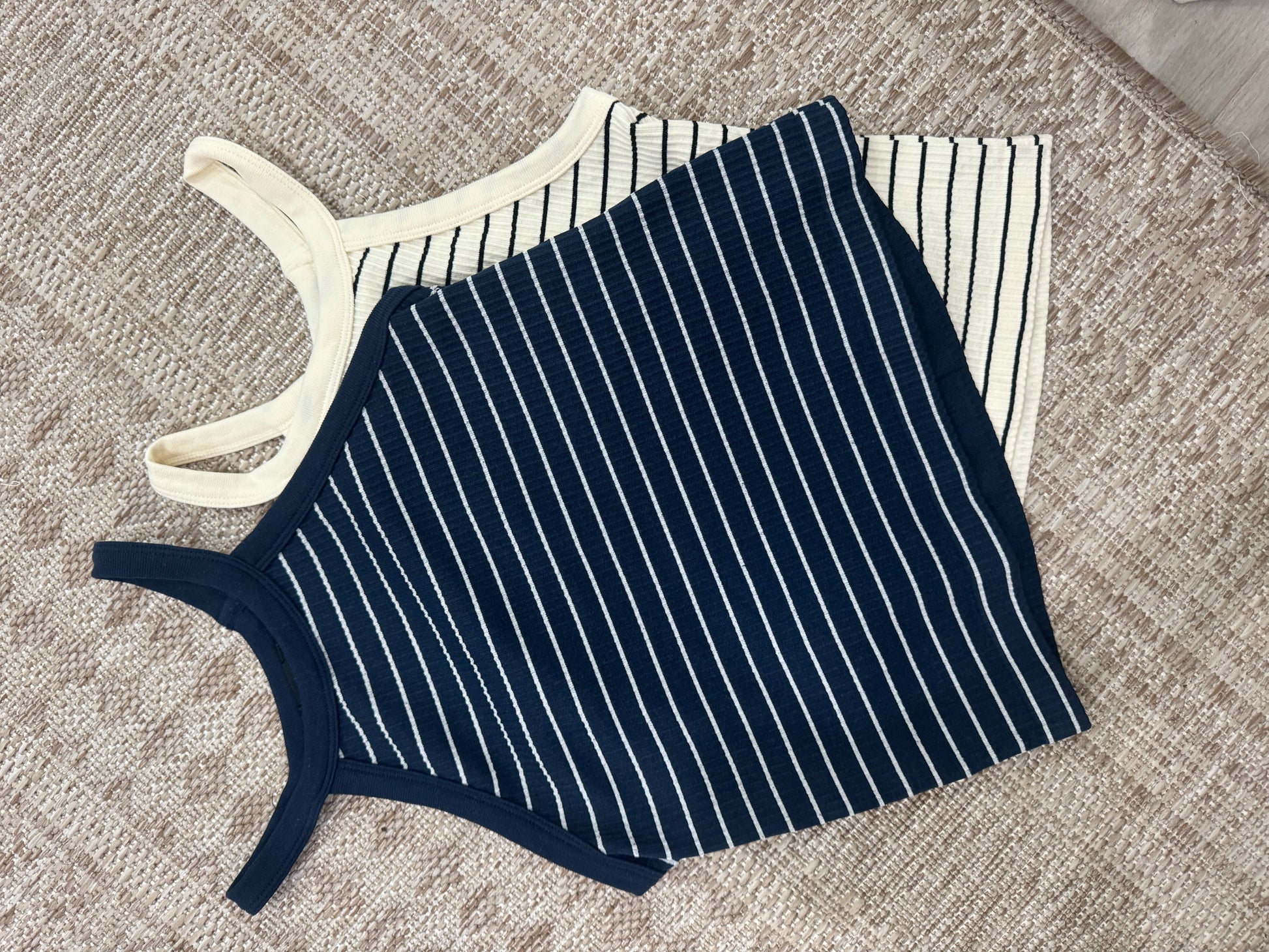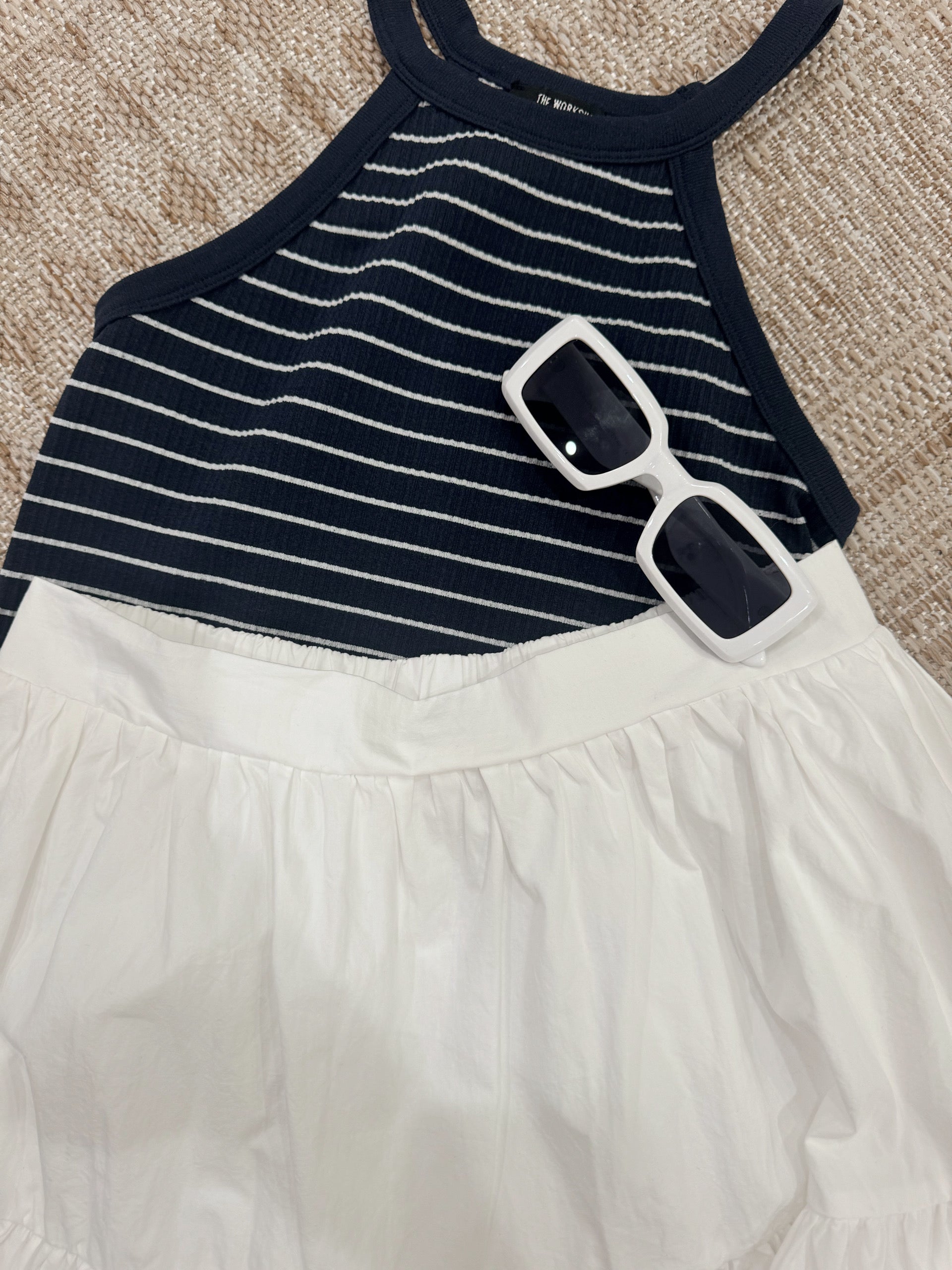 - Comes in cream & black and navy & white