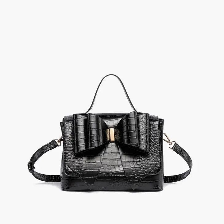 Faux Croc Double Bowtie Handbag