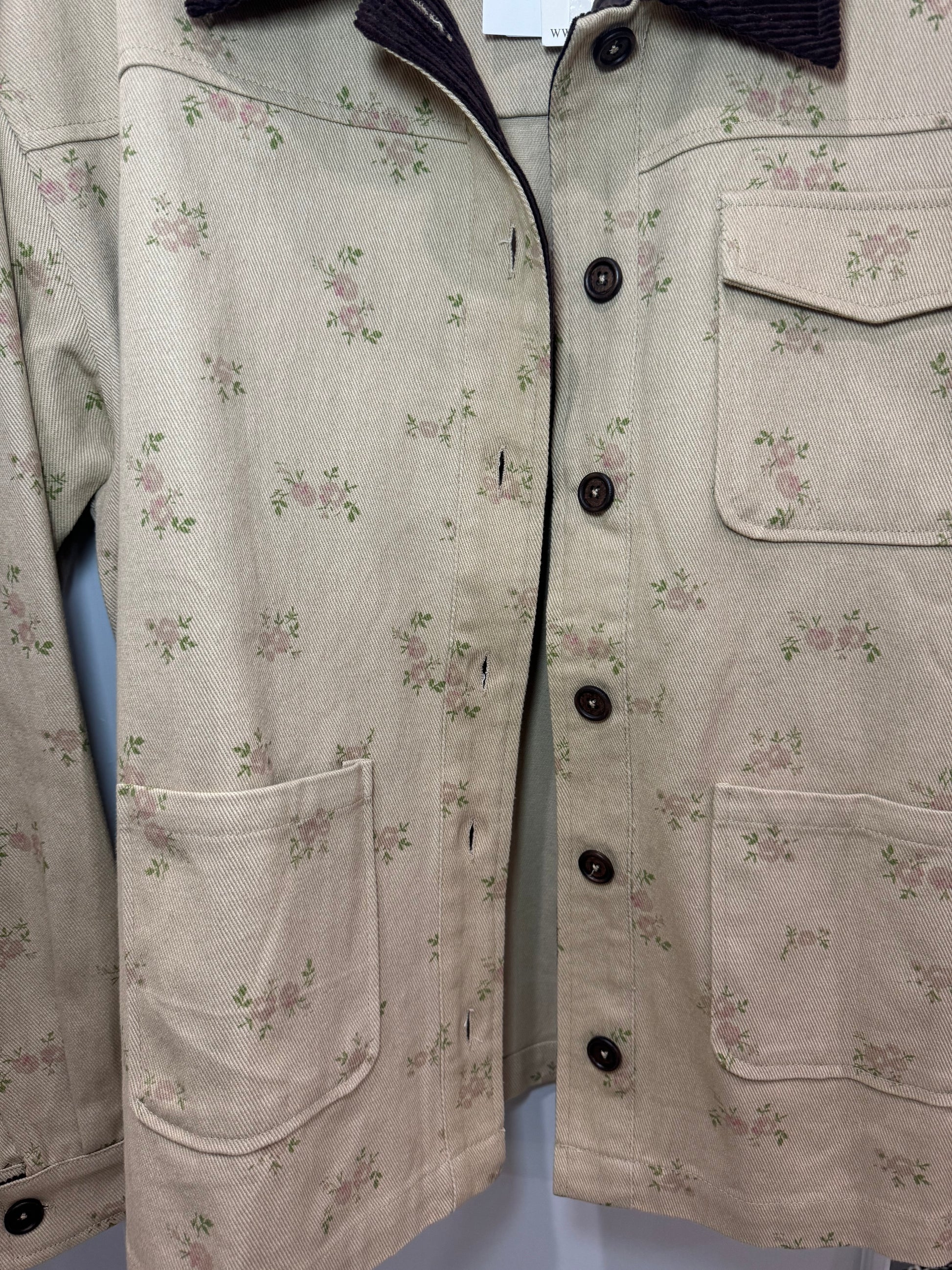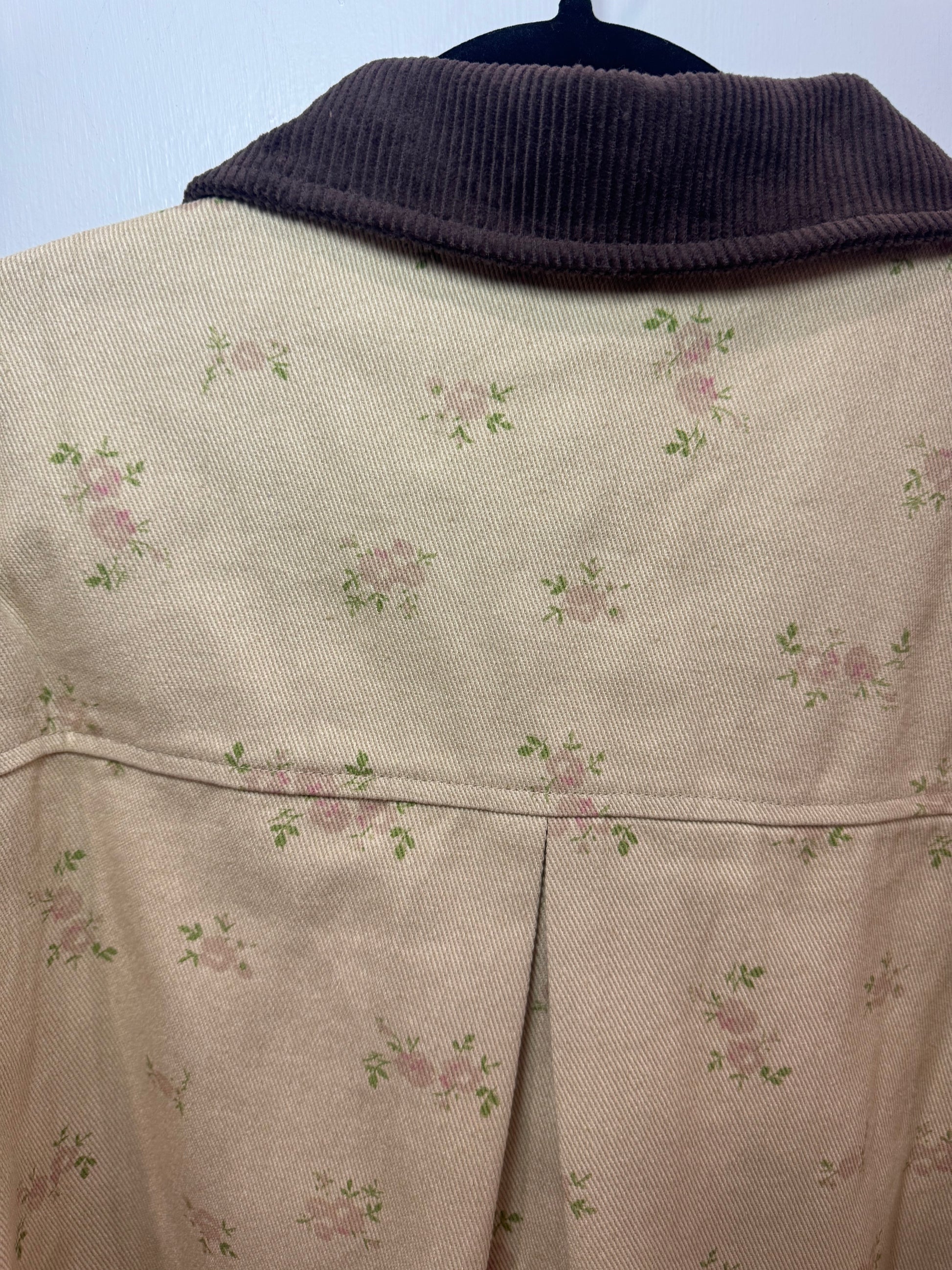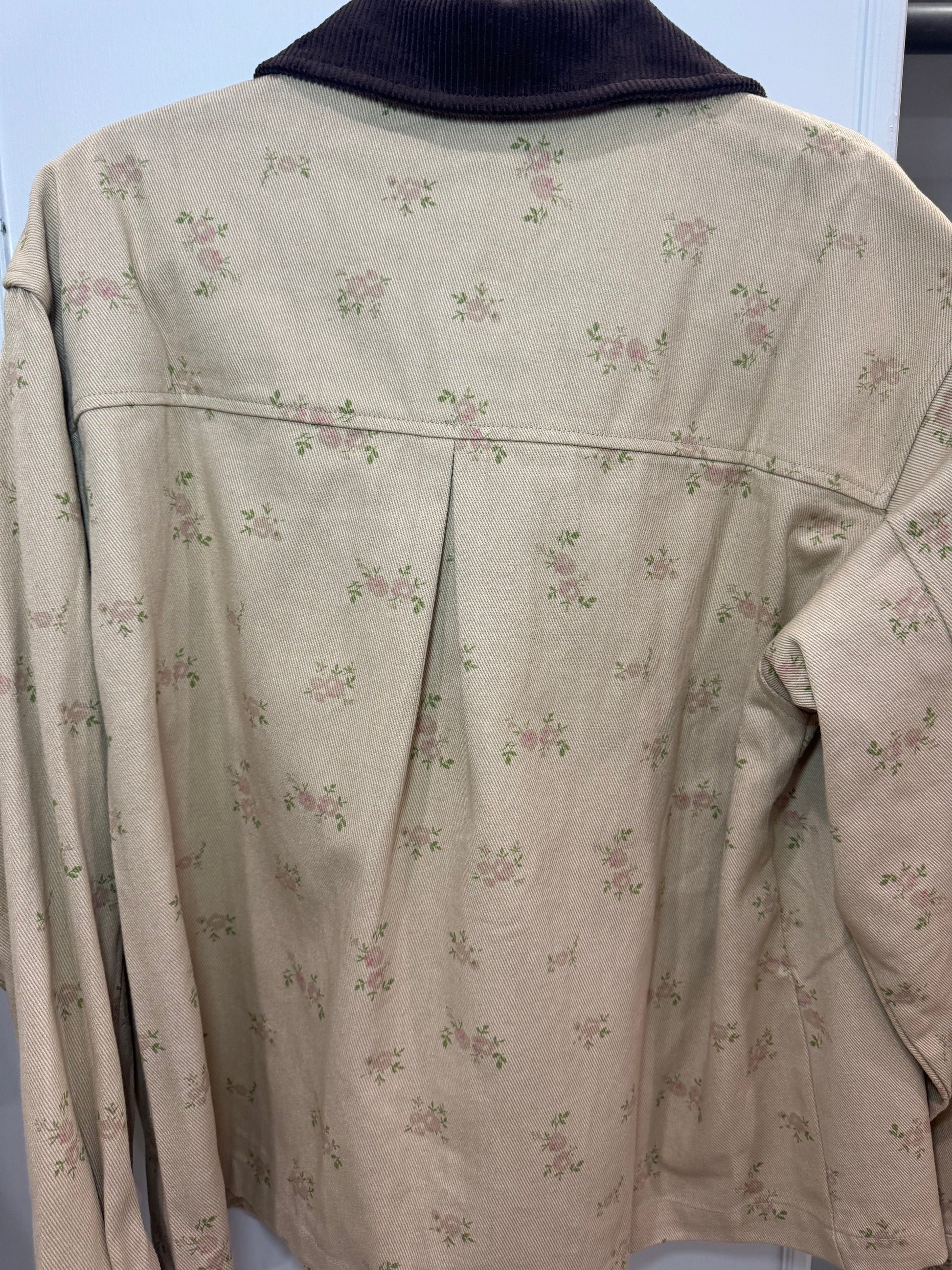 The Highlands Corduroy Jacket features a playful floral design and a unique dark brown collar.