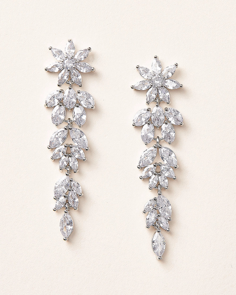 Make a memorable entrance with these stunning Royal Wedding CZ Dangle Earrings. The dramatic and bold design features marquis-shaped CZs in a beautiful cascading pattern, adding a touch of elegance to your bridal ensemble. These versatile earrings are perfect for both a royal wedding or any special occasion, making them a timeless addition to your jewelry collection. Whether you're walking down the aisle or attending a glamorous event, these earrings are sure to turn heads and make you feel like royalty. Crafted with high-quality materials, these earrings are both luxurious and affordable, adding the perfect finishing touch to your bridal look.