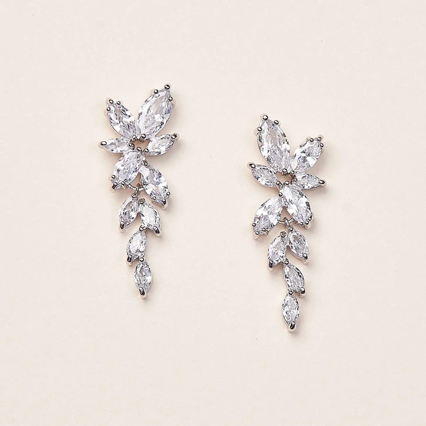 Complete your bridal look with these stunning Say "I Do" CZ Earrings, featuring delicate marquise CZs arranged in a cascading floral vine design. The sparkling diamond-like stones add a touch of elegance and glamour, making them the perfect accessory for your special day. These beautiful earrings are versatile enough to be worn long after your wedding day, adding a subtle sparkle to any outfit. With their timeless and understated beauty, these earrings are a must-have for any bride looking to add a touch of romance to her wedding ensemble. Make a statement and say "I Do" to these exquisite earrings.