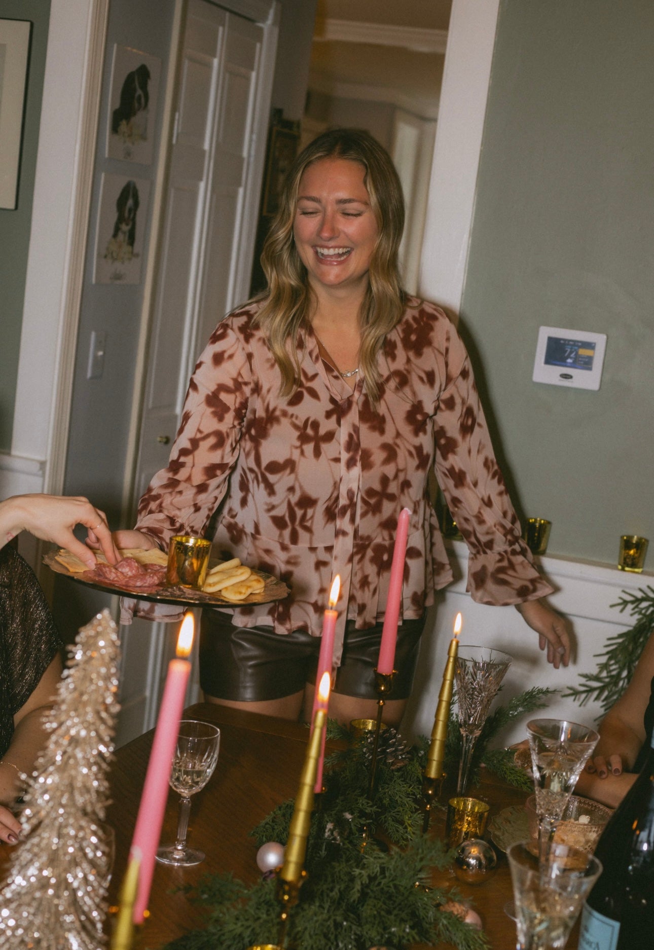 Get ready to make a statement with our Soho Blouse! The nude color is accentuated with bold deep red floral print details, while the elastic wrist adds a stylish touch.